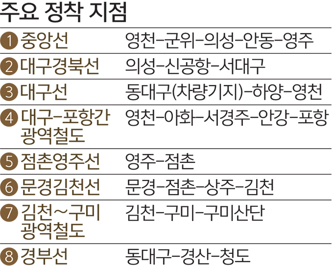 대구선(동대구∼영천)은 100년 만에 복선전철 시대를 맞아 대구경북광역철도의 광역 순환 운행이 현실화하면 통합신공항 영향권 확대에 따른 공항경제권이 형성된다. 여기에 대구∼포항 간 광역철도와 연계하면 포항·경주·경산 등 동남권에서는 영천역과 동대구역에서 환승하고, 안동·영주·영덕 등 중·북부권에서는 의성역 환승을 통해 빠르게 신공항 접근이 가능해진다.