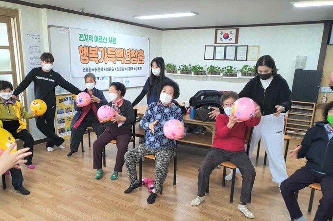 노인들 찾아가 구강관리 봉사하면서 실습