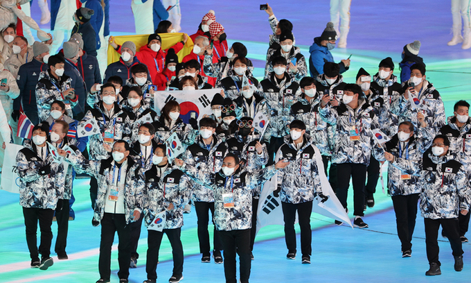한국선수단 기수 차민규가 맡아