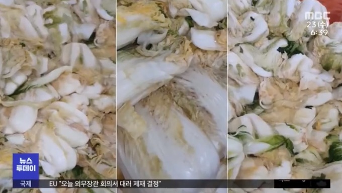 MBC ‘뉴스데스크’는 지난 22일 식품의약품안전처에 접수된 공익신고에 따라 충북 진천의 김치공장 한 곳의 내부를 촬영한 영상을 공개했다. 해당 공장에서 제조한 김치는 ‘명장김치’로 시중에 유통됐다.