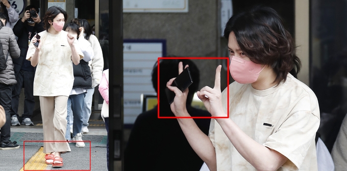 이날 라운드 티셔츠와 슬랙스를 입는 등 다소 캐주얼한 차림으로 등장한 김희철은 빨간색 슬리퍼를 신고 팬들에게 ‘V’자를 그리며 화답해 눈길을 끌었다.