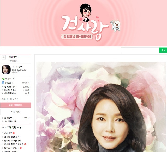 포털 사이트 네이버에 개설된 ‘김건희 여사 팬카페’(건사랑) 회원 수는 15일 오전 8만2000명을 기록했다.