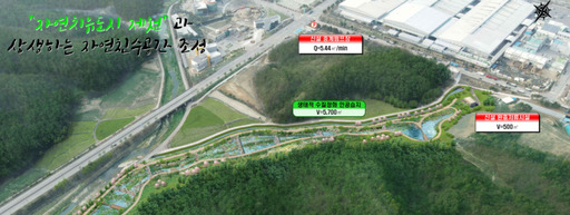 시는 사고가 발생하면 초기 오염물은 저류조에 담고 용량이 넘어서면 생태습지로 담도록 설계했다. 하천물을 저류시설로 끌어 생태습지 식물을 길러 수질을 정화하고 경관도 향상 시킨다.