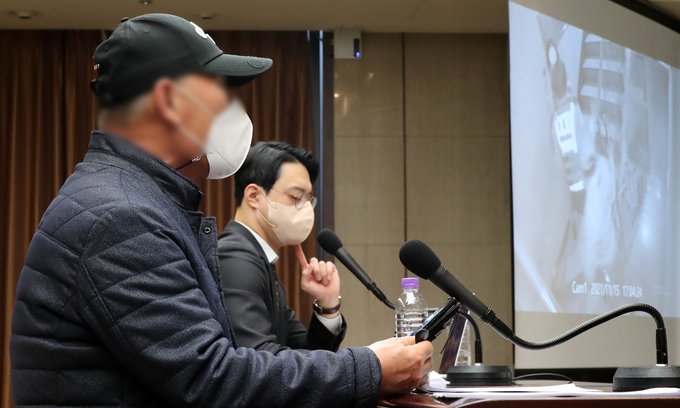 피해자 측은 5일 서울 한국프레스센터에서 기자회견을 열고 법원의 허가로 확보한 지난해 11월 15일 인천시 남동구 한 빌라의 현장 CCTV 영상을 공개했다. 화면을 보면 당일 오후 5시4분쯤 이 빌라 4층에 사는 A씨는 아래층의 40대 여성 B씨에게 흉기를 휘둘렀다.