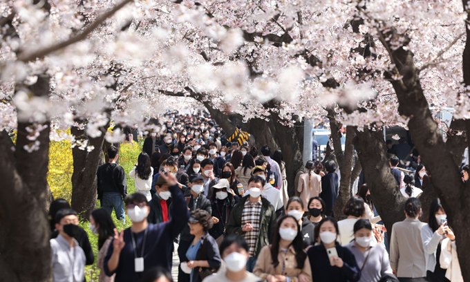 시민들은 외투를 벗어 한쪽 팔에 걸치거나 웃옷 소매를 걷어 올리며 따뜻한 봄 날씨를 즐겼다. 벚꽃과 닮은 연분홍색 마스크를 쓴 이들도 많았다.