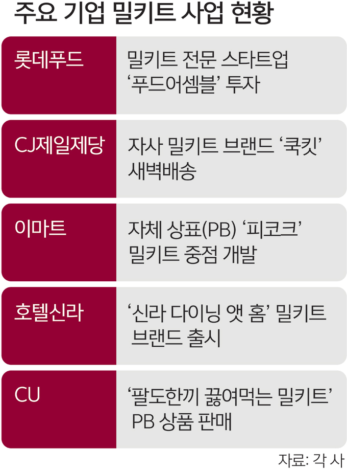 호텔신라(신라 다이닝 앳 홈)와 CU(팔도한끼 끓여먹는 밀키트) 등 편의점도 밀키트 사업에 가세했다.