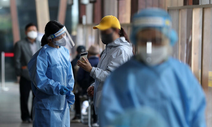 19일 서울 송파구보건소에 마련된 신종 코로나바이러스 감염증(코로나19) 선별진료소에서 의료진이 검사 받으러 온 시민들을 안내하고 있다. 뉴스1