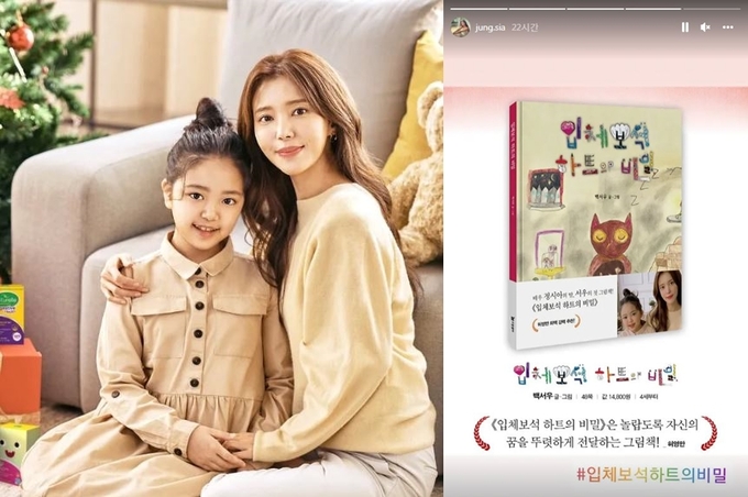 공개된 사진에는 정시아의 딸 서우의 첫번째 그림책인 ‘입체 보석 하트의 비밀’의 표지 사진(오른쪽)이 담겨 있다. 특히 공개된 책 표지에는 ‘허영만 화백 강력 추천’이라는 추천사가 포함돼 눈길을 끌었다.