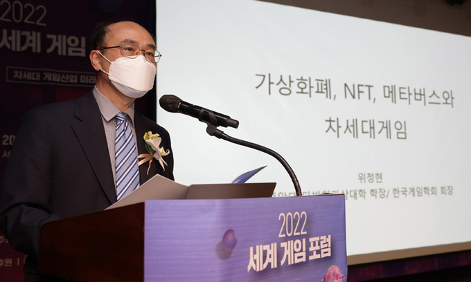 “지금 등장하고 있는 새로운 가상의 자산 영역, 가상화폐, NFT(대체불가토큰), 메타버스 등은 게임의 영역이다. 차세대 게임은 단일 게임을 기반으로 메타버스 등을 흡수해서 플랫폼으로 진화해야 한다.”
