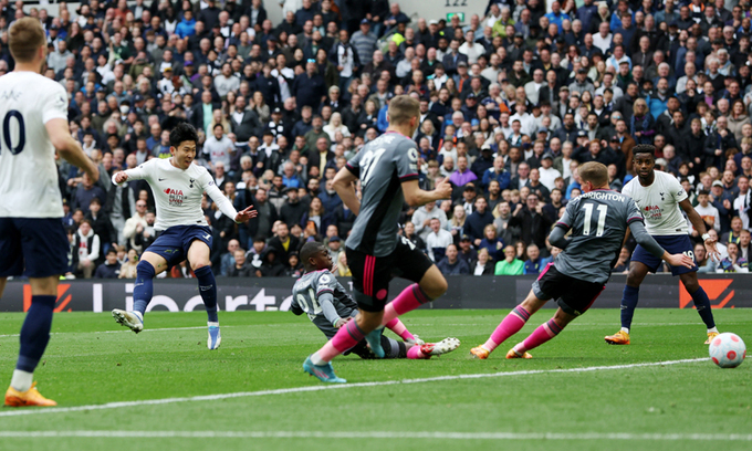 영국 런던 토트넘 홋스퍼 스타디움에서 토트넘과 레스터시티가 맞붙은 지난 1일 2021∼2022 잉글랜드 프리미어리그(EPL) 35라운드 경기. 종료를 선언하는 주심 휘슬이 울린 뒤 팬들의 시선은 온통 손흥민에게로 향했다. 중계카메라도 수분간 그를 따라다녔다. 그럴 수밖에 없었다. 손흥민이 이날 2골1도움을 기록하며 토트넘의 3-1 완승을 이끌어 냈기 때문이다. 게다가 골 하나하나가 특별한 아름다움과 이를 뛰어넘는 의미를 지니고 있었다.