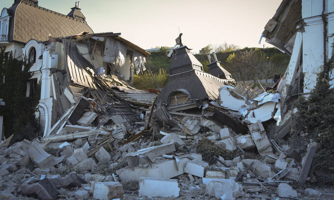 지난 8일(현지시간) 우크라이나 오데사의 한 호텔이 러시아의 미사일 공격에 파괴되어 있다. AP연합뉴스