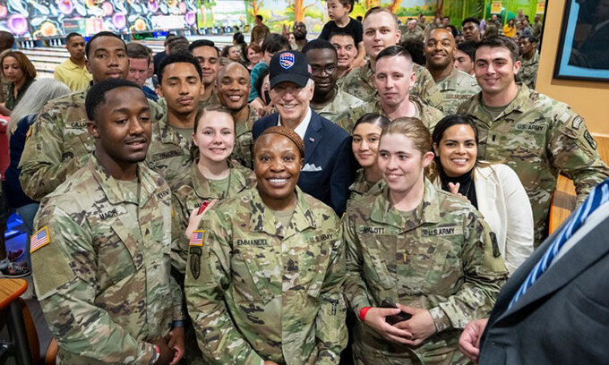 바이든 대통령은 한국에서 복무하는 미 공군 장병 및 그 가족들과 반갑게 악수하고 인증사진 촬영 요구에도 일일이 응하며 환하게 웃었다. 대통령과의 만남을 위해 간소하게 차려진 다과 테이블 위에서 음료수를 집어 마시기도 했다. 사진과 함께 올린 글에서 바이든 대통령은 “오늘 오산공군기지의 현역 장병, 군무원 및 그 가족들과 마주하는 영예를 누렸다”며 “이들이야말로 우리 두 나라(한·미)가 서로에게, 또 강력한 한·미동맹을 위해 기여하는 헌신을 대표한다”고 치하했다. 이어 미군 장병들을 향해 “조국과 동맹국을 방어하기 위해 여러분이 하고 있는 일에 대해 깊은 감사를 드린다”고 고마움을 표시했다.