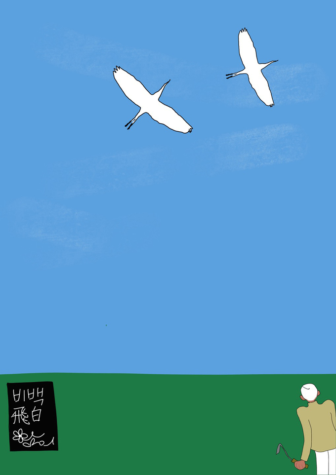 노인의 머리 위로 백로 두어 마리가 하늘 자락을 가르며 날아갑니다.