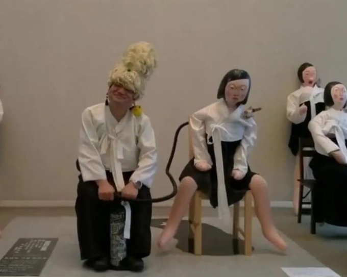 극우단체인 일본제일당이 지난 23일 유튜브에 게재한 동영상을 보면 당수인 사쿠라이 마코토(櫻井誠)는 소녀상 풍선에 바람을 넣어 축 처져 있던 인형이 다리를 벌린 채 의자에 앉은 모양을 연출했다. 언론이 위안부 피해자 문제를 부풀렸다는 주장이다.