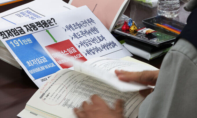 최저임금법 제4조1항은 ‘최저임금은 근로자의 생계비, 유사 근로자의 임금, 노동생산성 및 소득분배율 등을 고려해 정한다. 이 경우 사업의 종류별로 구분해 정할 수 있다’고 명시하고 있다. 경영계에서는 이 조항을 근거로 업종별 구분 적용을 요구하고 있으나 최저임금 제도 시행 첫해인 1988년에만 구분 적용됐고, 30년 넘게 모든 업종에 같은 금액이 적용됐다. 앞서 윤석열 대통령은 대선 과정에서 공약으로 업종별 구분 적용을 내걸기도 했다.