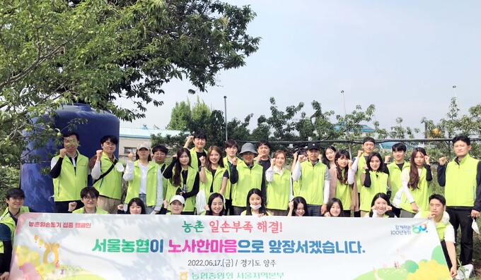 서울농협은 영농철을 맞아 17일 서울지역본부(본부장 황준구), 서울영업본부(본부장 임순혁), 서울노조(위원장 한성식) 등 노사가 하나 되어 경기도 양주시 소재 복숭아 농가에서 농촌일손돕기 집중 캠페인을 실시하였다.