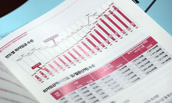 내년도 최저임금 수준을 둘러싼 노사 줄다리기가 이번 주 본격화한다. 대폭 인상으로 최저임금 ‘1만원 시대’를 열려는 노동계와 지불능력 부족을 이유로 전년 수준으로 동결하려는 경영계의 정면충돌이 불가피하다. 윤석열정부 출범 이후 첫 심의라는 점에서 이번 논의 결과는 향후 5년간 최저임금 향방을 진단할 가늠자가 될 것으로 보인다.