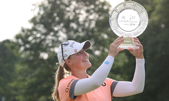 컵초가 두 달 만에 시즌 2승을 쌓으며 US오픈 우승자 호주교포 이민지(26·하나금융그룹)와 함께 다승 공동선두로 나섰다. 컵초는 20일 미국 미시간주 벨몬트의 블라이더필드 컨트리클럽(파72·6638야드)에서 열린 LPGA 투어 마이어 클래식(총상금 250만달러) 최종4라운드에서 이글 1개, 버디 3개, 보기 2개, 더블보기 1개로 1언더파 71타를 쳤다. 최종합계 18언더파 270타를 적어낸 컵초는 이날 이븐파에 그친 3라운드 선두 넬리 코르다(24·미국)와 4라운드에서만 7타를 줄인 리오나 매과이어(28·아일랜드)와 동타를 이뤄 연장전에 돌입했다. 18번 홀(파4)에서 진행된 연장 1차전에서 코르다가 버디 퍼트에 실패하면서 먼저 탈락했고 연장 2차전에서 머과이어는 공이 홀을 돌아 나와 아쉽게 버디 퍼트에 실패한 반면 컵초는 가볍게 버디를 낚아내 우승을 확정했다.