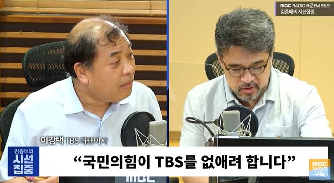 국민의힘 시의원들이 교통방송 TBS를 사실상 폐지하는 조례안을 추진하는 등 TBS를 압박하는 것에 대해 TBS 이강택 대표가 언론 인터뷰에 출연해 “국민의힘 타깃(목표)은 ‘김어준의 뉴스공장’이고 사실상 굶어 죽으라는 얘기”라고 반발했다.