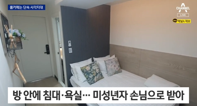 이 룸카페 안에는 침대와 욕실이 설치돼 마치 숙박업소와 유사한 모습이지만, 이 카페의 주인은 공간 대여업체로 등록해 미성년자 손님도 받고 있다고 채널A와의 인터뷰에서 밝혔다.