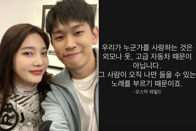 해당 문장은 아일랜드의 유명 시인이자 극작가였던 오스카 와일드의 명언으로, 여자친구인 조이에 대한 마음을 나타낸 것 아니냐는 추측이 일고 있는 것.