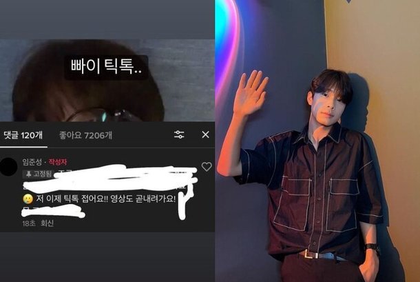 18일 임준성은 인스타그램 스토리에 “빠이 틱톡. 저 이제 틱톡 접어요. 영상도 곧 내려가요”라는 글과 함께 사진을 게재했다.