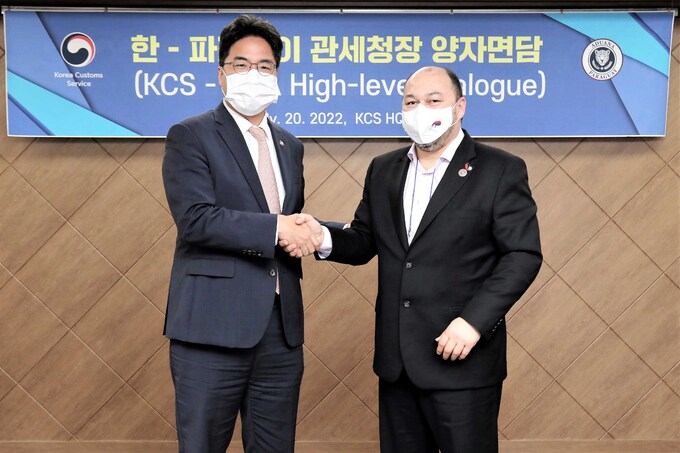 윤태식 관세청장은 20일, 정부대전청사에서 훌리오 페르난데즈 파라과이 관세청장과 제1차 한-파라과이 관세청장회의를 갖고 양 관세당국 간 협력 사항을 논의하였다.