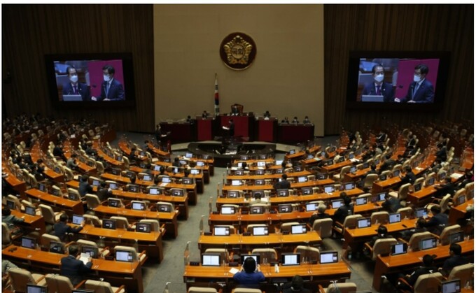 여론조사업체 알앤써치가 뉴스핌 의뢰로 지난 23~25일 전국 만 18세 이상 남녀 1008명을 대상으로 실시해 이날 발표한 정당 지지율 조사 결과, 국민의힘 33.4%, 민주당 38.9%로 집계됐다.