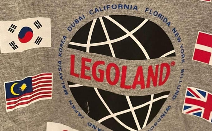미국 테마파크인 레고랜드가 만든 기념품 티셔츠에 태극기가 잘못 그려져 있는 모습. 서경덕 교수 인스타그램 캡처