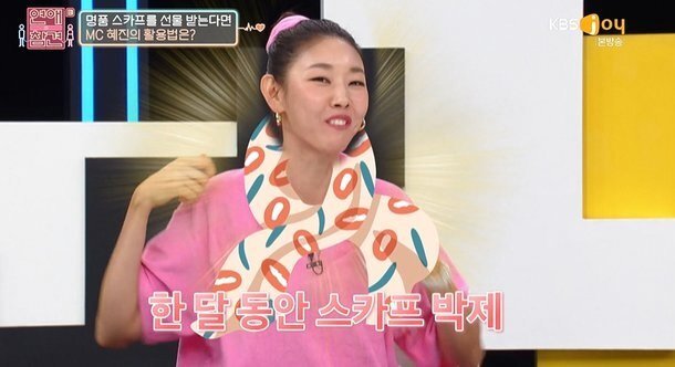 이어 한혜진은 “만일 내가 명품 스카프를 받는다면 ‘오빠 무슨 돈이 있어? 다음부터는 안 받아. 이게 마지막이야’라고 할 것 같다”며 “근데 그러고 나서 샤워할 때도 손목과 머리에 스카프를 묶었다 풀었다 하며 좋아할 것 같다”고 가정했다.