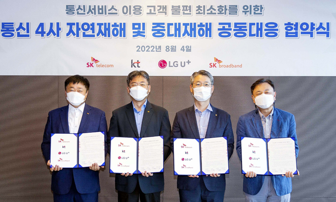 SK텔레콤, SK브로드밴드, KT, LG유플러스 등 통신 4사는 자연재해로 인한 통신 서비스 복구, 예방에 공동으로 대응하는 업무협약을 체결했다고 4일 밝혔다.