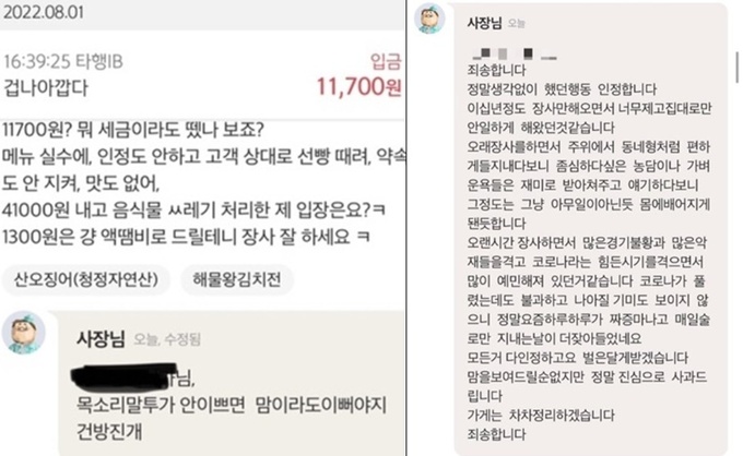 끝으로 그는 “정말 진심으로 사과 드린다. 가게는 차차 정리하겠다”고 재차 사과했다.