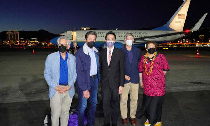 AP 통신과 대만 언론 등에 따르면 5명으로 구성된 의회 대표단은 이날 오후 7시쯤 대만 수도 타이베이의 쑹산(松山) 공항에 도착했다. AP는 “대만의 한 방송사가 이들을 태운 미국 정부 항공기가 공항에 착륙하는 모습을 방영했다”고 전했다.