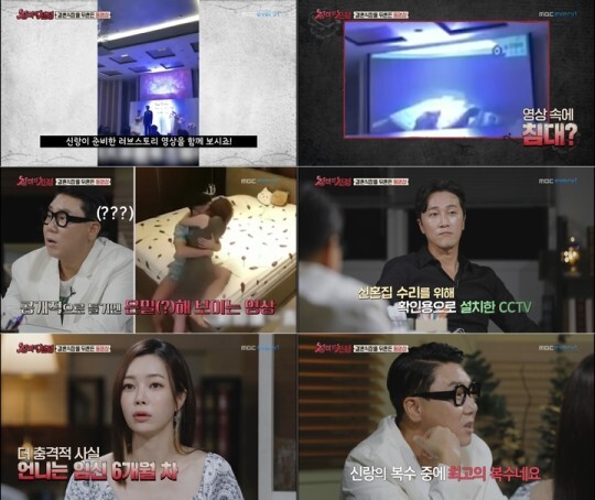 사연을 소개한 박지민 아나운서(사진 맨 아래 왼쪽)는 “(이 부부는) 2년 동안 연애를 하고 결혼한 거였다”며 “신혼집 수리 확인을 위해 CCTV를 설치했는데 신부의 불륜 장면이 찍혔다”고 설명했다.