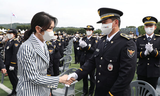 앞서 김 여사는 윤 대통령과 함께 지난 19일 충북 충주시 중앙경찰학교 신임경찰 제310기 졸업식에 참석했다. 졸업식이 끝나고 윤 대통령이 20·30대 청년 경찰관 20명과 간담회를 가지는 동안, 김 여사는 별도로 일부 여성 경찰관 및 가족들이 참석한 비공개 간담회를 가졌다. 이에 대해 더불어민주당은 “경찰 수사를 받는 김 여사의 경찰학교 방문 및 졸업생 간담회는 부적절한 행보”라고 비판했다.