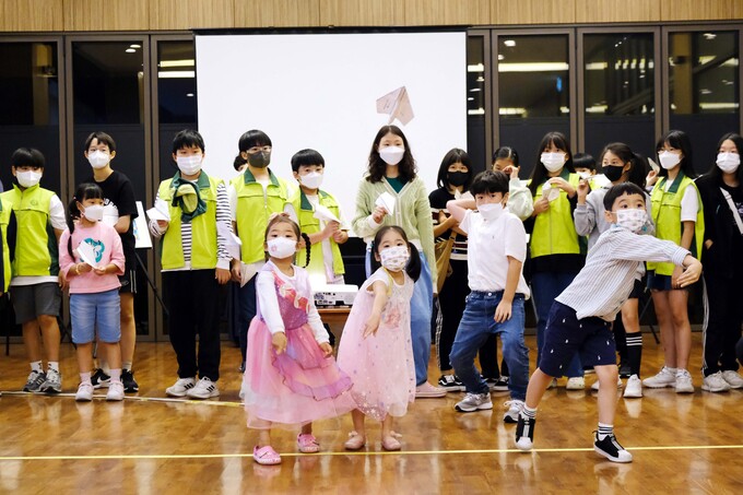 또한, 국가대표의 종이비행기 곡예공연도 관람하고 푸른 하늘의 날 주제로 만든 영상과 신나는 노래들을 보고 들으며, 종이비행기를 만들어 날리는 체험도 했다.