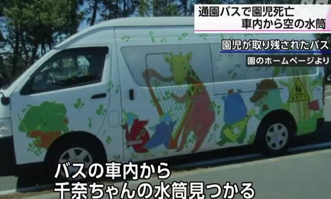 지난 5일 시즈오카(靜岡)현 마키노하라(牧之原)시에서 3살 A양이 유치원 통학버스에서 5시간 가량 갇혀 있다 열사병으로 사망하는 사건이 발생했다.