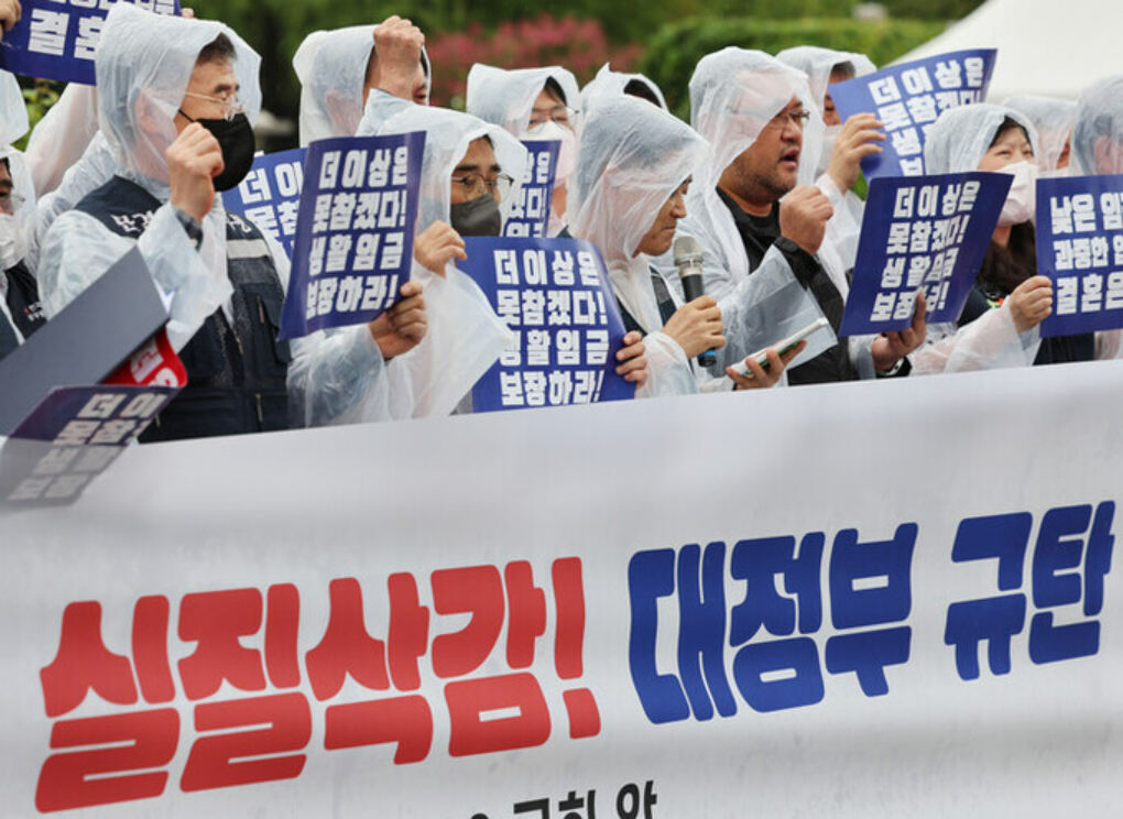 김동명 한국노총 위원장은 “얼마 전 공무원보수위가 발표한 1.7% 인상률은 사실상 실질임금 –6%대의 삭감 조치”라며 “20~30대 청년 공무원 55만명은 국민을 위해 생계와 영혼을 갈아 희생하고 있다”고 했다.