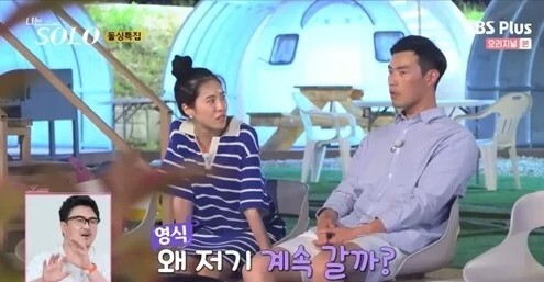 지난 14일 방송된 SBS PLUS·ENA PLAY 예능 프로그램 ‘나는 솔로’에서 현숙은 2:1 데이트 후 영식과 함께 이야기를 나눴다.