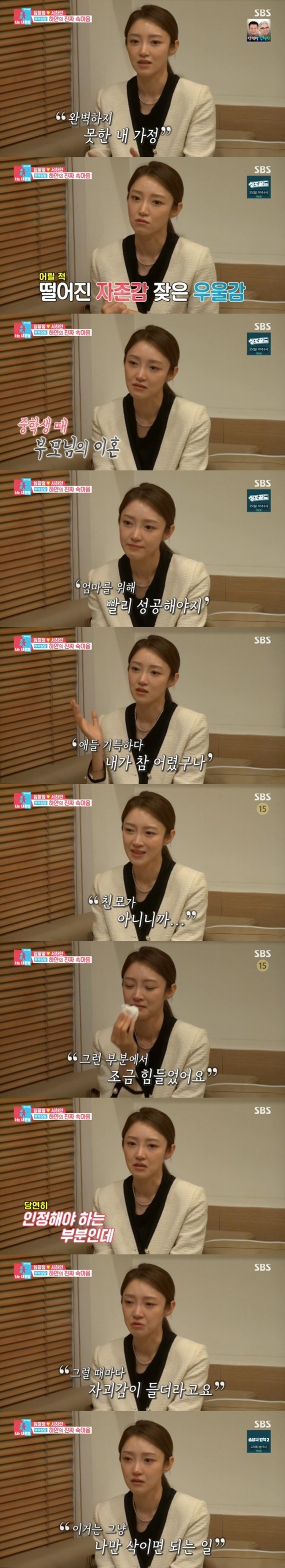이날 서하얀은 노규식 박사와 개별 상담을 진행, 부모님의 이혼으로 떨어졌던 자존감에 위축됐던 유년 시절을 고백했다. 서하얀은 당시 "엄마가 너무 고생한다, 빨리 성공해야지"라는 감정을 느꼈고, 이에 사회생활도 일찍 시작하게 됐다고. 서하얀은 "지나고 나니 이런 사람들이 많은데, 그 당시에는 '왜 나만 이렇지?' 했던 것 같다"라고 털어놓으며 눈물을 흘렸다.