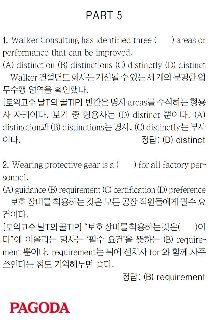 [파고다 강남 1타토익 RC김나래] PART 5