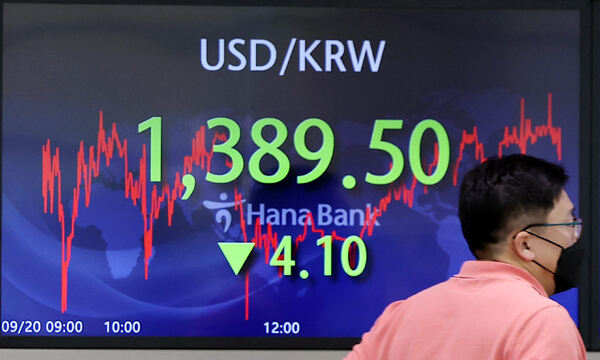 20일 오후 2시30분 기준 원·달러 환율은 1389.8원이다. 이날 서울 외환시장에서 원·달러 환율은 전 거래일 종가(1393.6원)보다 3.6원 내린 1390원으로 출발했다. 지난 14일부터 원·달러 환율은 3거래일 연속 1390원대에서 출발해 1400원대 진입이 시간문제라는 분석도 나왔지만 외환당국이 장 마감 직전 달러를 매도하는 등 1300원대를 사수하기 위해 적극적으로 개입하고 있다.