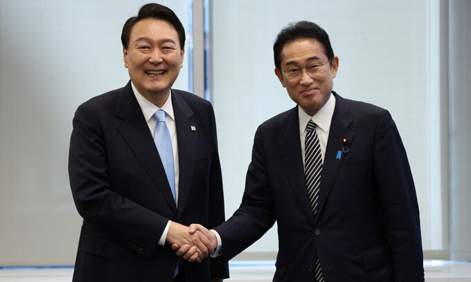 회동 성사 과정에서도 신경전이 첨예했다. 대통령실이 지난주 한·일 정상회담이 열릴 것이라고 확정적으로 언급하자, 기시다 총리가 곧장 불쾌한 반응을 보인 것으로 알려졌다. 대통령실 관계자는 “동시 발표가 관례였는데, 어느 시점에서 제대로 지켜지지 못한 측면에 대해 이견이 있었다”고 했다.