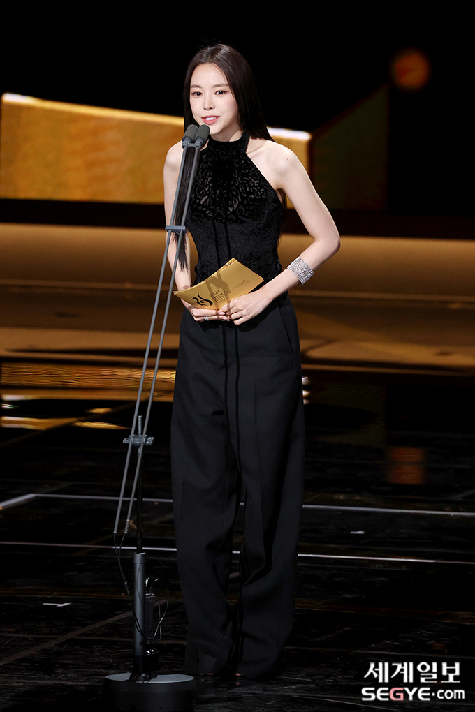가수 겸 배우 손나은이 22일 오후 서울 영등포구 KBS홀에서 열린 ’서울 드라마어워즈 2022’에 시상자로 참석해 인사말을 하고 있다.