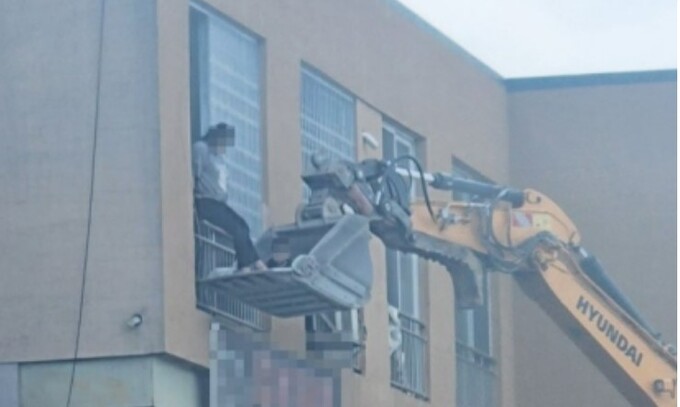 이 직원들은 인근 건설 현장에서 사용하던 굴착기를 동원, 버킷을 건물 2층 창문 바로 밑까지 펼친 뒤 A씨 모자를 안전하게 구조했다.