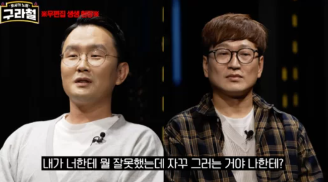 윤형빈이 “근데 그걸 너는 그렇게 공개적으로 얘기를 해서 나를 보내버리려고 그런 게 잘한 거니?”라고 하자 김영민은 “보내려는 의지가 있었으면 진작에 했을 거다. 나 그만두고 바로 그 다음 명절 때 전화로 우리 싸운 적 있지 않냐”고 말했다.