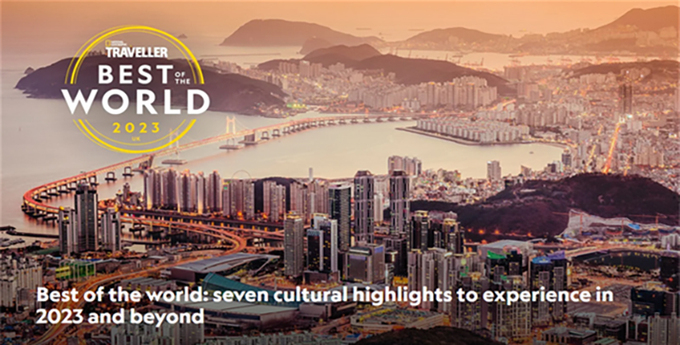 내셔널지오그래픽은 ‘2023년 최고의 여행지 35’에 자연, 모험, 가족 여행지, 커뮤니티, 문화 등 총 5개 부문에 걸쳐 각 7개 도시를 발표했다. 부산은 문화 부문 7개 도시에 선정됐다.