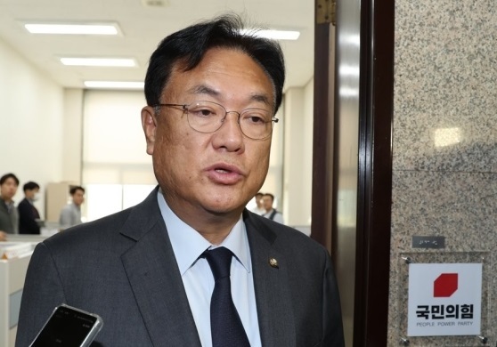 국민의힘 정진석 비상대책위원장이 14일 국회 대표실에 들어가며 취재진의 질문에 답변하고 있다. 연합뉴스