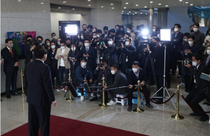 앞서 대통령실은 이날 오전 기자단 공지를 통해 "최근 발생한 불미스러운 사태와 관련해 근본적인 재발 방지 방안 마련 없이는 지속할 수 없다고 판단했다"며 도어스테핑 중단 소식을 알렸다.