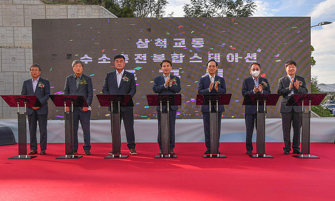 지난 9월 30일 강원도 삼척시 수소충전 복합스테이션 구축 부지에서 ‘삼척 교동 수소충전 복합스테이션 준공식’이 열리고 있다.